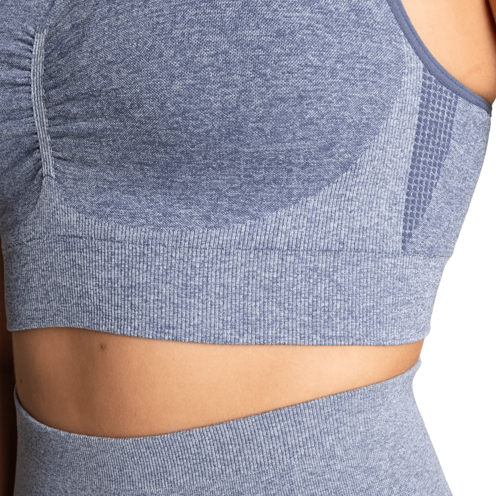 The Curve Scrunch Bra is made to match the Curve Scrunch Leggings. It’s a Seamless Sports Bra with a soft hand feel. The shoulder straps are adjustable for the perfect fit and this light support bra has removable pads. The front has a scrunch seam to enhance your curves.