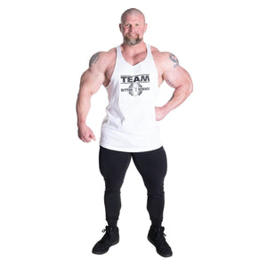 The Old School Stringer is a true throwback to when Team Better Bodies started in 1982. The tank has design cues from the garments created by founder Brian Moss during the early days of Better Bodies. The dedicated members of Better Bodies Gym on 19th St NYC could be seen wearing Team Better Bodies tanks in this style in the early 80s. This stringer is loose fitting and has a large Team Better Bodies application on the chest.