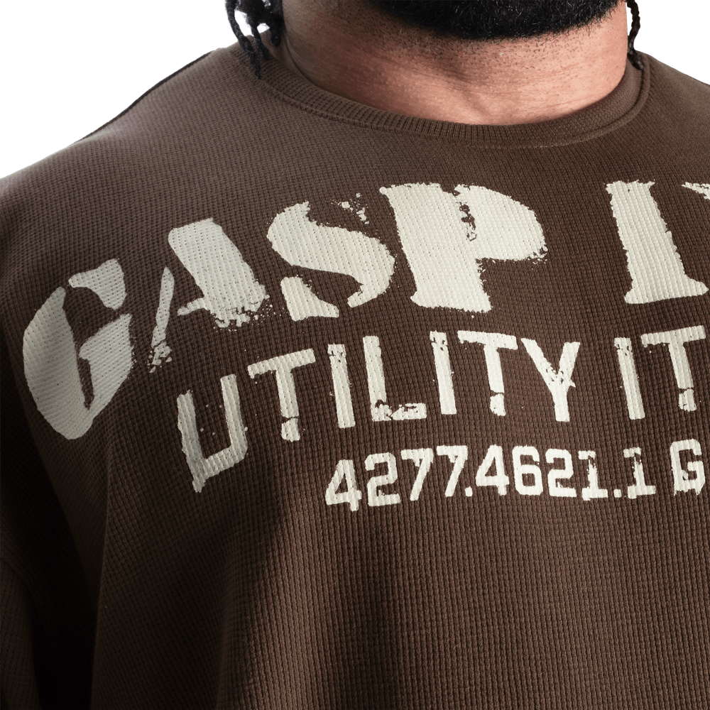 With a chest print inspired by our Thermal Gym Sweater and a bold distressed back print that spans from shoulder to shoulder this tee makes a clear statement; You are a part of the GASP Iron World.