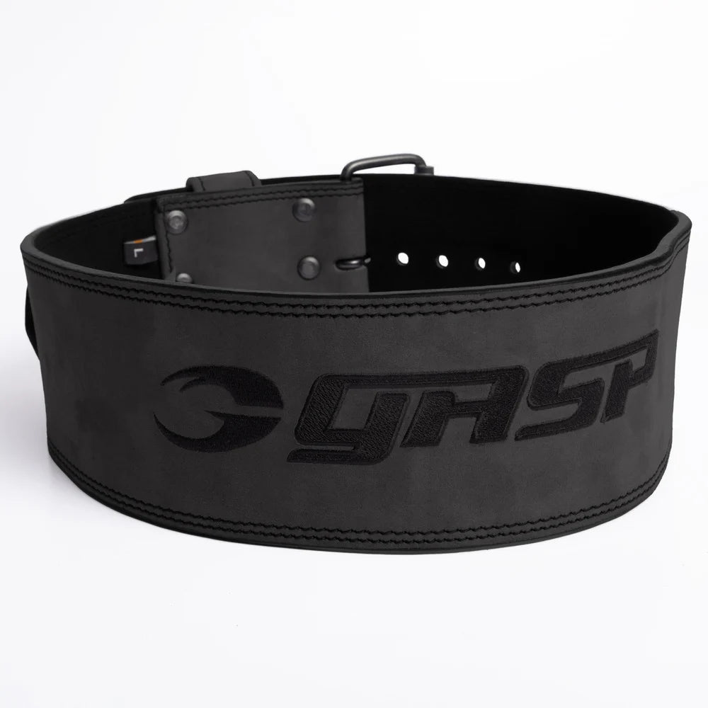 Features: Heavy buckle with on pin, prong holes for adjustable fit, cantered GASP embroidery back, "Lightweight" embroidery inside