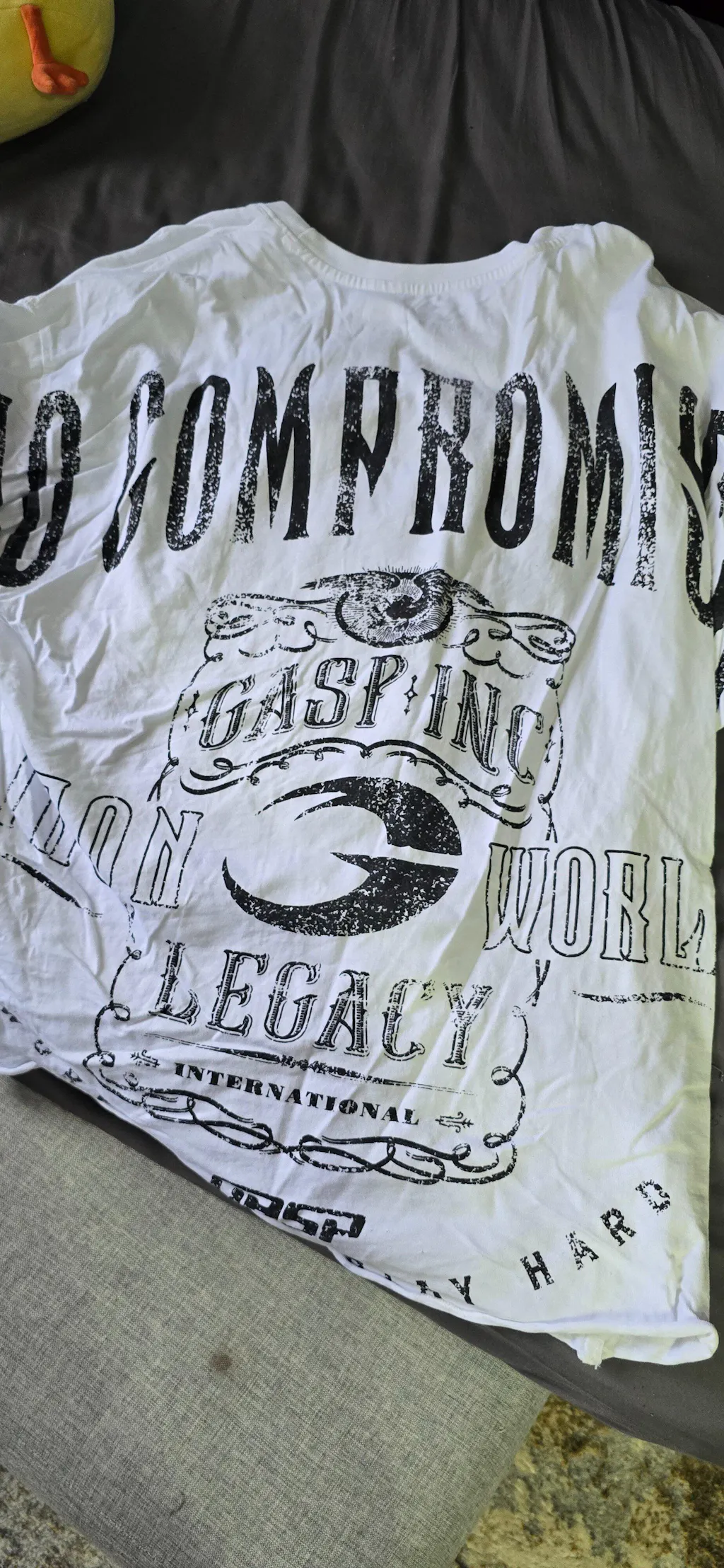 The large No Compromise prints on both chest and back, as well as the small GASP tab on the sleeve ensures everyone knows what lifestyle you're about.