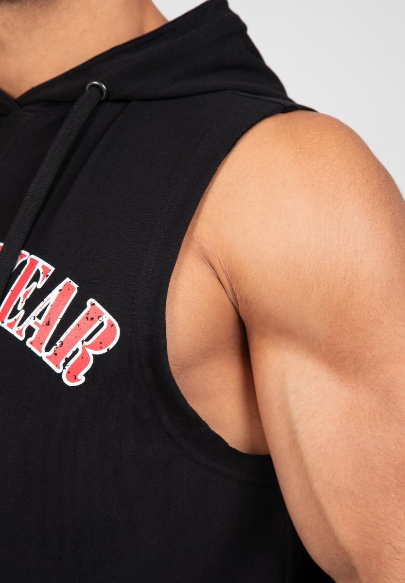 Train in style and comfort with the Gorilla Wear Chico Sleeveless Hooded T-Shirt. This versatile shirt is designed for athletes who demand the best from their workout gear. The lightweight material keeps you cool and comfortable, even during the most intense workouts. The sleeveless design allows for complete freedom of movement, while the hood with adjustable drawstrings and raw edges give it a bold, modern look. The kangaroo pocket adds extra functionality, perfect for keeping your essentials within reach. Whether you're hitting the gym or out and about, the Chico Sleeveless Hooded T-Shirt is the perfect choice for every fitness enthusiast.