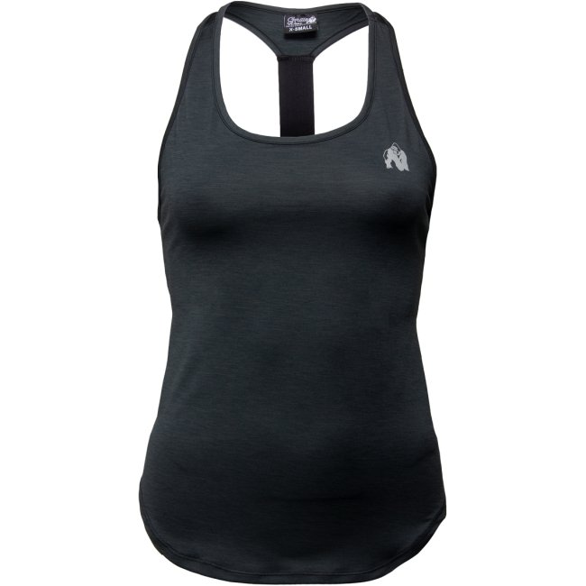 The Monte Vista tank top is made out of a polyester/spandex mixed fabric which will give you the required comfortable feeling during your workouts! This tank top is also available in Pink and Blue.This tank top comes with the main idea to provide the user with optimal function when performing in or outside of the gym. In the front and on the back this tank top features a reflecting Gorilla Wear logo and prints, which is ideal for outdoor and/or indoor workouts. On the back between the shoulder blades it features an elastic band with a thick high-quality 3D rubber print stating ‘I Dare You’. The special cut at the bottom makes this tank a perfect tank top for your squat workouts.